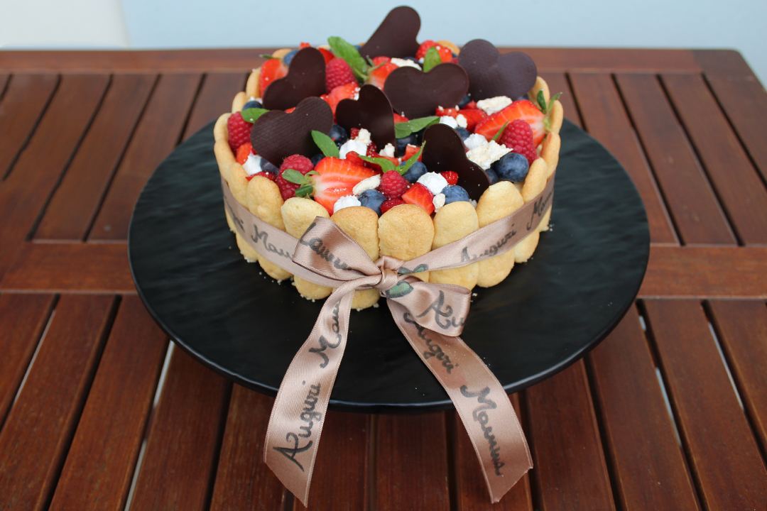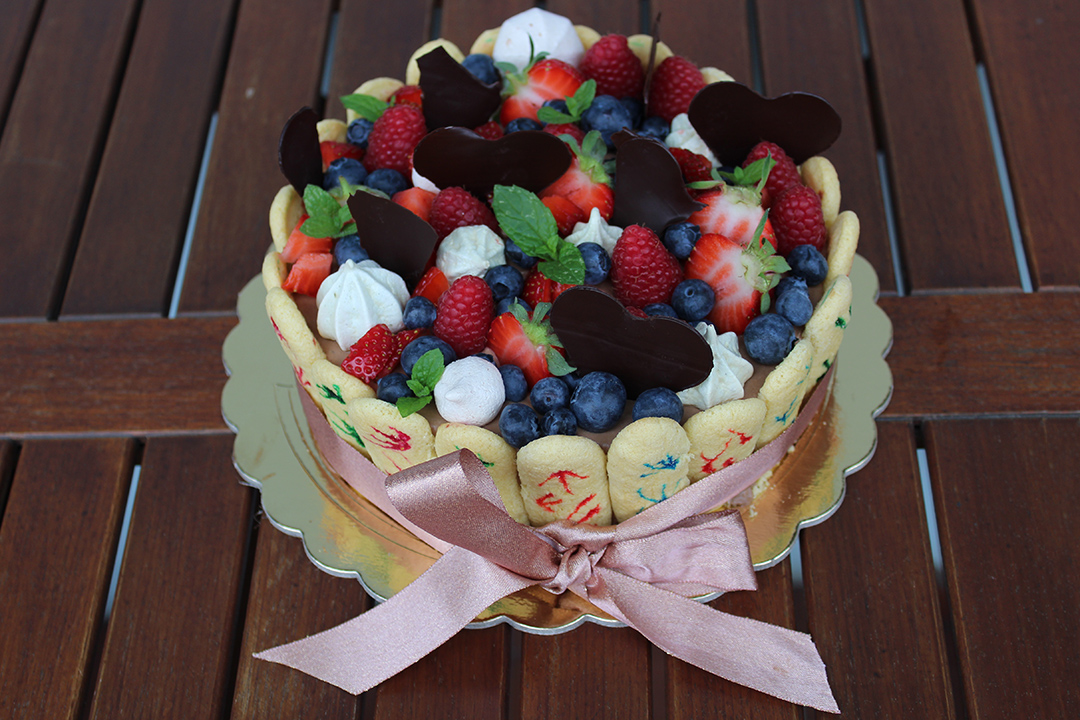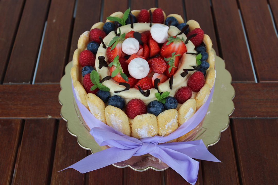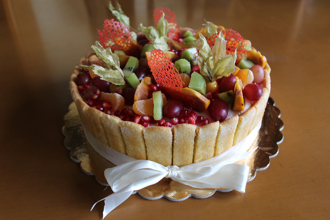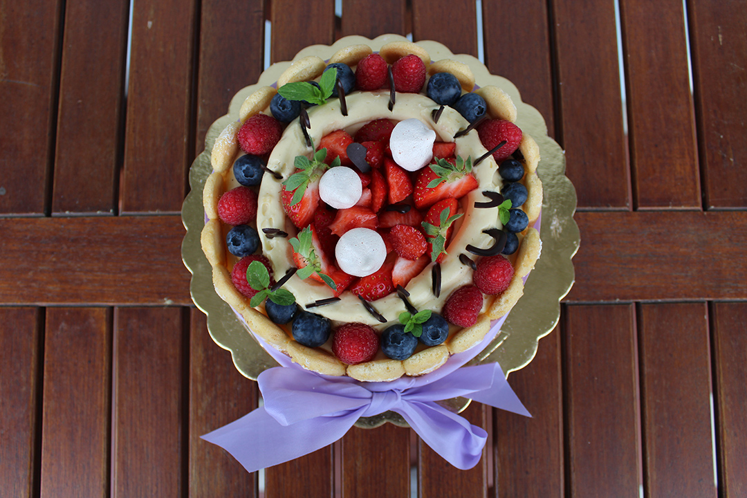 Savoiardi artigianali con crema diplomatica e inserto con frutta di stagione.
