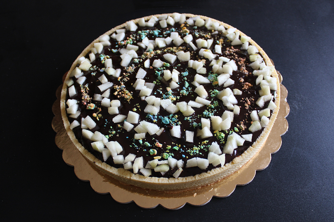 INGREDIENTI: pasta frolla (farina, burro, zucchero, uova, cacao), pere, cioccolato fondente, panna, uova, latte.