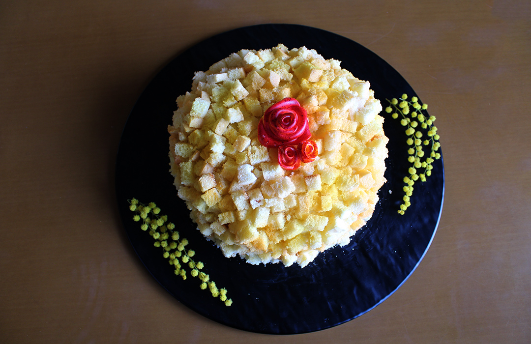 Torta mimosa per festa della donna con aggiunta a piacere di ananas.