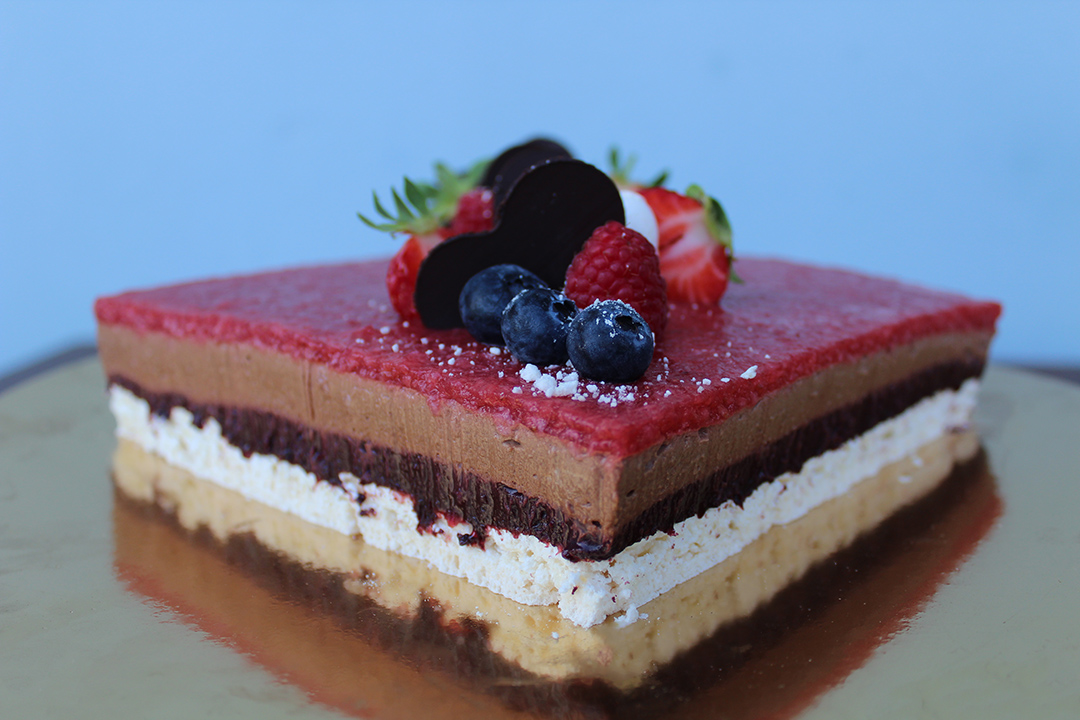 Torte stratificate di bavarese e mousse a vari gusti con possibili decorazioni personalizzate.