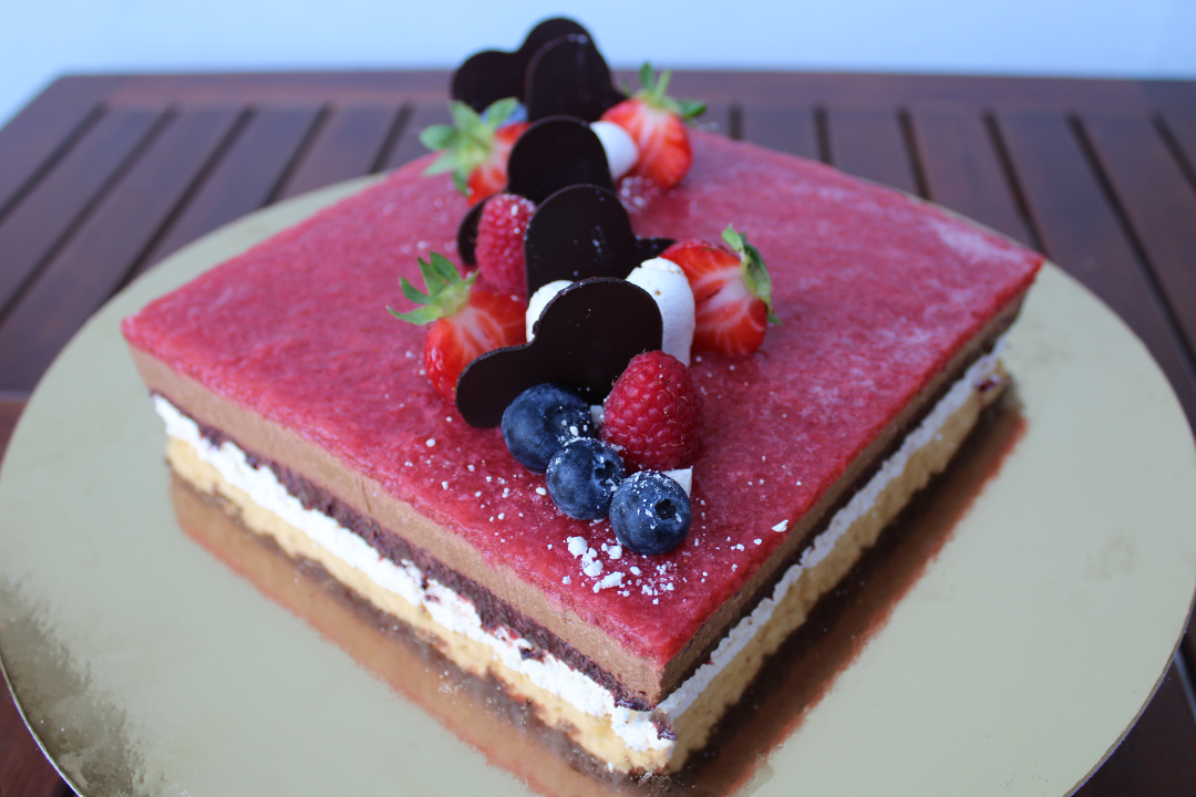 INGREDIENTI: farina, uova, panna, latte, zucchero, cacao, frutta, cioccolato, gelatina alimentare, burro.